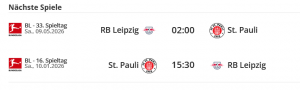 … und damit auch für unsere Kiezkicker im Kampf um den zweiten Klassenerhalt nacheinander (nach 1990). Als erste Gäste im neuen Jahr kommen die Brausebullen aus Leipzig ans Millerntor, die – kurz vor dem Ende der Hinrunde – als Tabellenvierter zum dritten Duell in der Beletage des deutschen Fußballs gegen die Boys in Brown antreten. Mit einem Sieg könnte der ungeliebte Relegationsplatz zumindest vorübergehend verlassen werden.