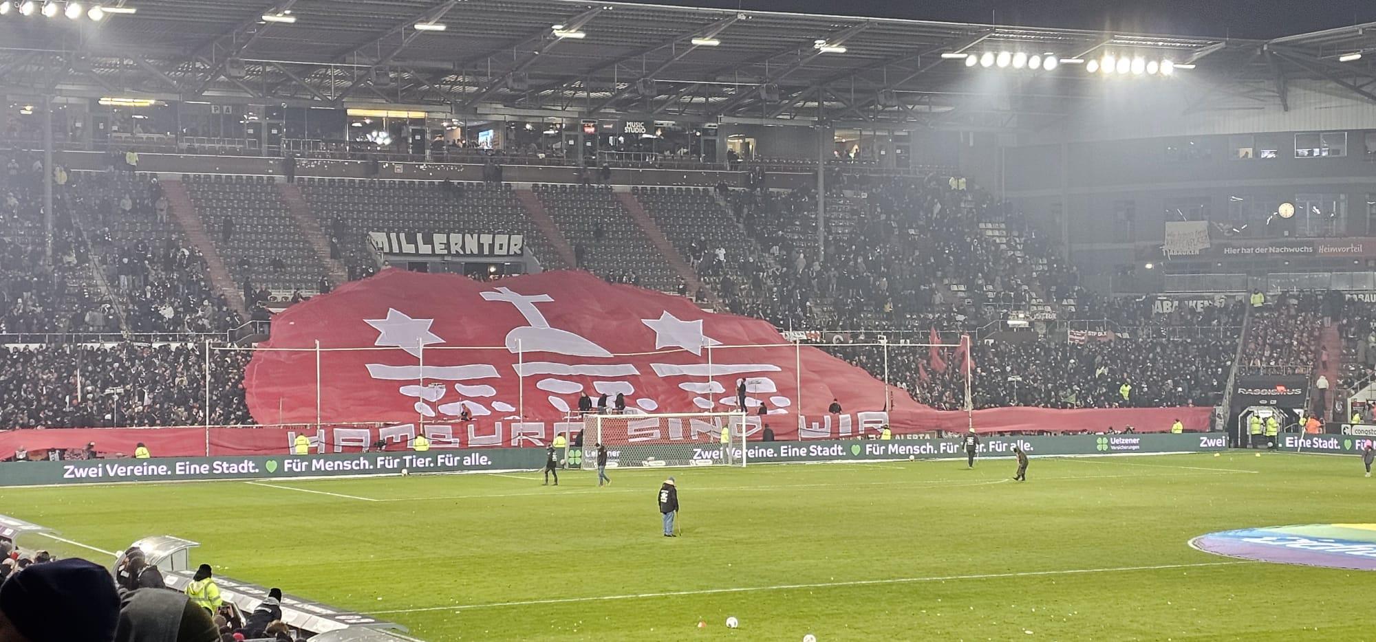 Nach der Pause gab es reichlich Qualm und Lichter auf beiden Seiten. Alle Reste von Silvester wurden aufgebraucht. Keine Sicht mehr. Deshalb durften (inklusive der Verletzungspausen) alle Menschen gut 20 Minuten länger in der bitteren Eiseskälte stehen. Schönen Dank auch. Interessant aber: Bis zum Wiederbeginn spielten sich Spieler beider Teams die Bälle zu. In der zweiten Hälfte gab es dann immerhin noch zwei Chancen für den FCSP, die Fernandez aber diesmal bravourös parierte, statt sie ins eigene Netz zu befördern. Positiv bleibt immerhin festzustellen, dass wir uns wenigstens diesmal keine Last-Minute-Tore eingefangen haben (man muss manchmal auch mit den kleinen Dingen zufrieden sein) und dass der FC St. Pauli wieder einmal nicht verloren hat, wenn der Übersteiger erscheint. Drei Punkte Richtung Klassenerhalt wären uns natürlich lieber gewesen.