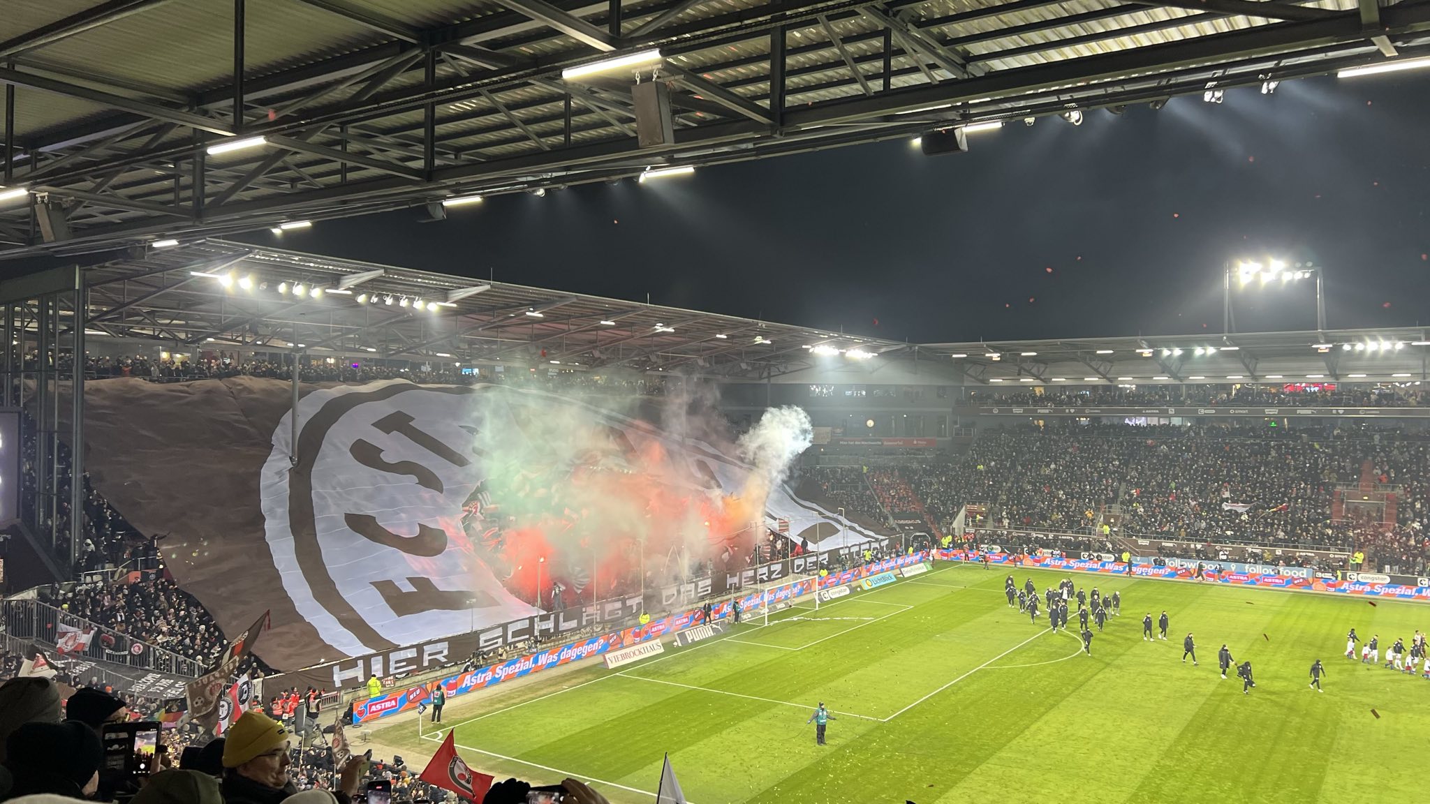 Allein: Nach der Pause gab es reichlich Qualm und Lichter auf beiden Seiten. Alle Reste von Silvester wurden aufgebraucht. Keine Sicht mehr. Deshalb durften (inklusive der Verletzungspausen) alle Menschen gut 20 Minuten länger in der bitteren Eiseskälte stehen. Schönen Dank auch. Interessant aber: Bis zum Wiederbeginn spielten sich Spieler beider Teams die Bälle zu. In der zweiten Hälfte gab es immerhin noch zwei Chancen für den FCSP, die Fernandez aber diesmal bravourös parierte, statt sie ins eigene Netz zu befördern. Positiv bleibt festzustellen, dass wir uns wenigstens diesmal keine last-Minute-Tore eingefangen haben (man muss manchmal mit den kleinen Dingen zufrieden sein) und dass der FC St. Pauli wieder einmal nicht verloren hat, wenn der Übersteiger erscheint. Drei Punkte Richtung Klassenerhalt wären uns natürlich lieber gewesen.