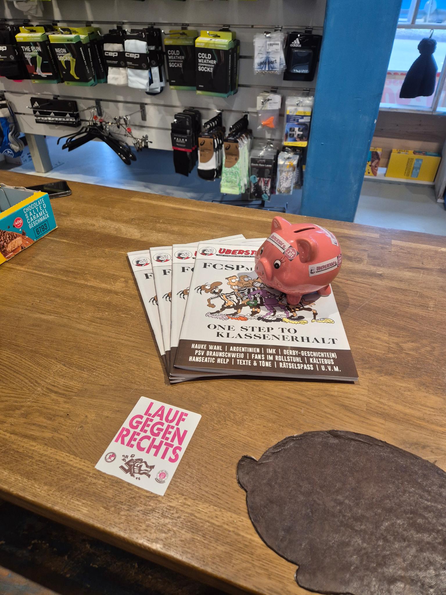Unsere Verkäufer*innen haben sich am und im Stadion brutal den Arsch abgefroren, um euch die Hefte anzubieten, aber wer keines abbekommen hat, gegen Leipzig verkaufen wir nochmal UND wir begrüßen eine neue Verkaufsstelle. Der Übersteiger wird nun auch im Hamburger Laufladen (Ohlsdorfer Straße) angeboten (inklusive eines süßen ÜS-Sparschweinchens). Und wehe, das klaut jemand: Vendetta!