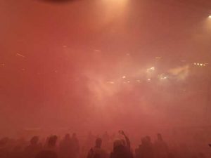 Zu Beginn der Partie zeigten beide Kurven, was sie noch so von Silvester übrig hatten. Nach knapp zehn Minuten versuchte der Qualm, sich durch die grellbunten Lichter des Doms in den Nachthimmel von St. Pauli zu kämpfen. Und gekämpft werden musste heute auch unbedingt!
